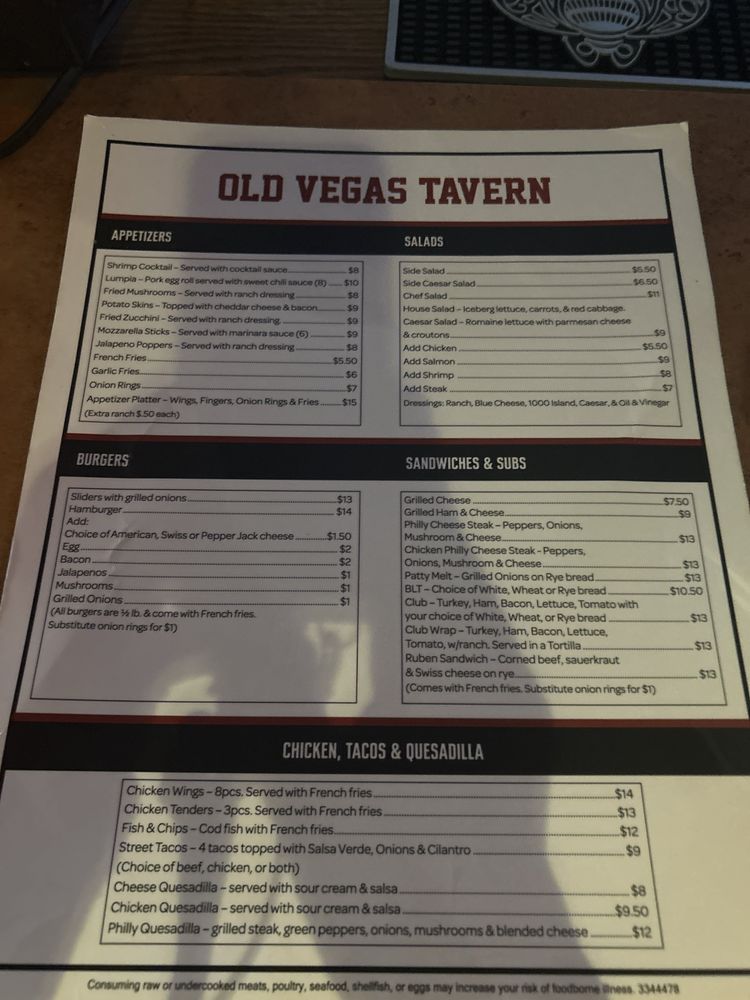 “ Old Vegas Tavern is a cool bar, perfect for catching a Vegas Golden Knights game and Football. The staff is very friendly and attentive. I came with my boyfriend, we grabbed a bite to eat and had a few drinks. They have a great variety of bar food. It's a unique space with a great local bar feel. I will definitely come again. ”